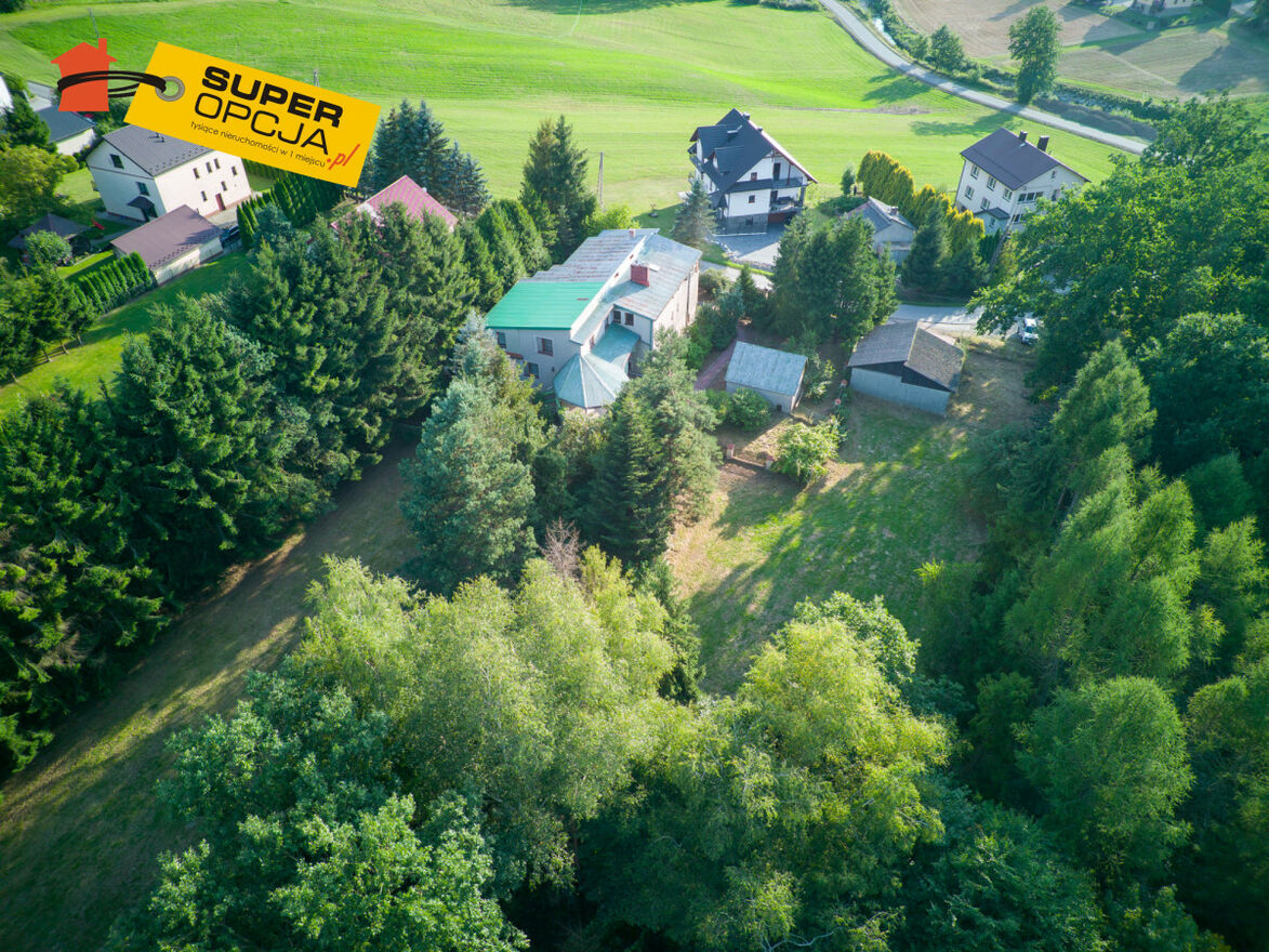 Nieruchomość do sprzedaży to ogromny teren (80 arów) ogrodzony, składający się z dużego budynku mieszkalnego i budynku garażowego.Nieruchomość może pełnić funkcje: